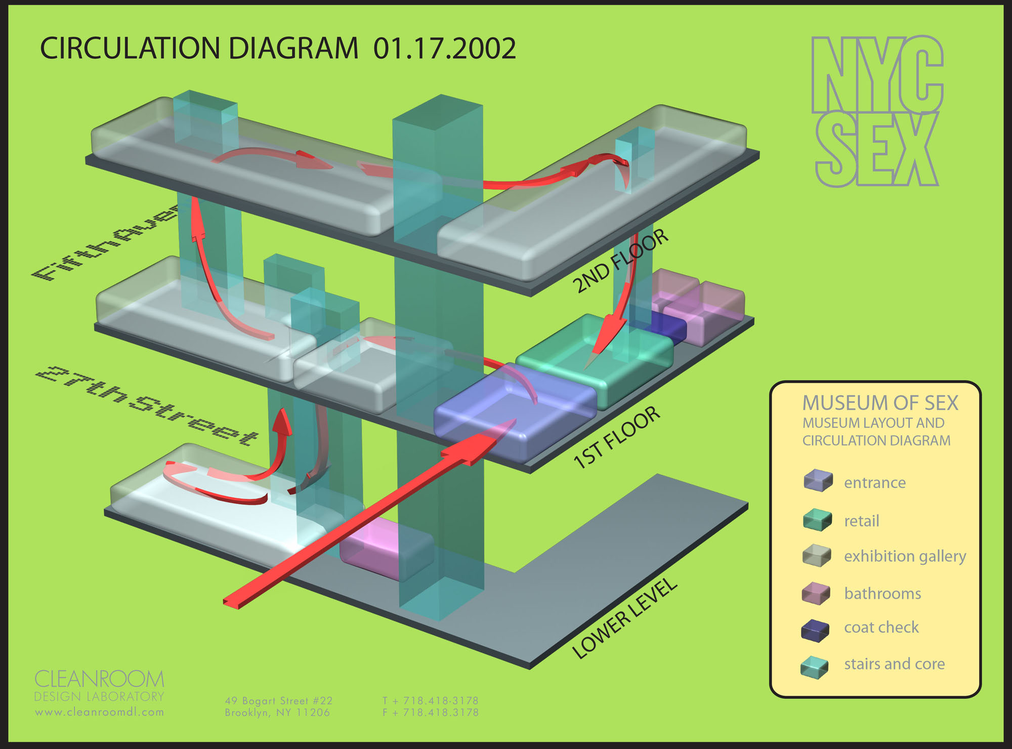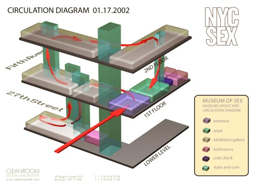 Cleanroom Design Lab, led by David Winston, was hired as the exclusive architectural designer for the Museum of Sex in NY. We converted a 2 storey existing retail space on 5th Avenue into a complete 12,000 sq. ft. sex museum with three galleries and a bookstore.