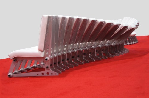 SPINE COUCH PROTOTYPE: Original furniture designed and fabricated by David Winston at Cleanroom’s NY studio.  The first working prototype is in use at the Mandalay Bay hotel and Resort Casino in Las Vegas.
