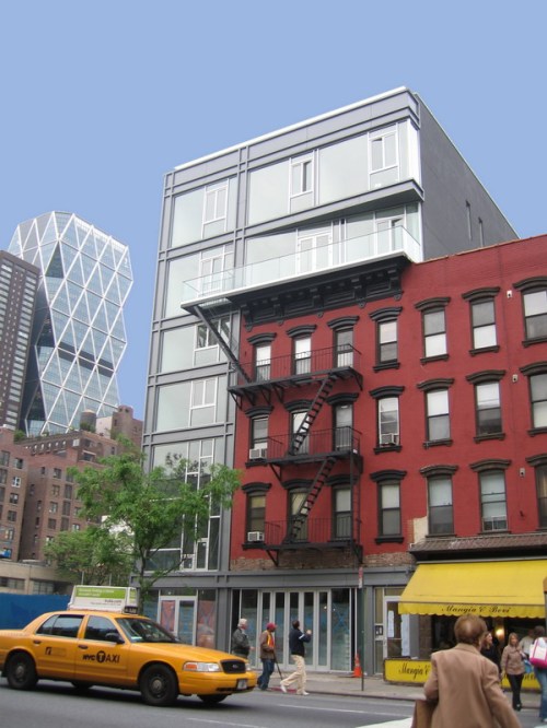 Architecture Design by David Winston, Cleanroom inc.  The exterior  was completed 2009, located at 53rd and 9th Avenue, New York.  After several delays, the building is now complete.